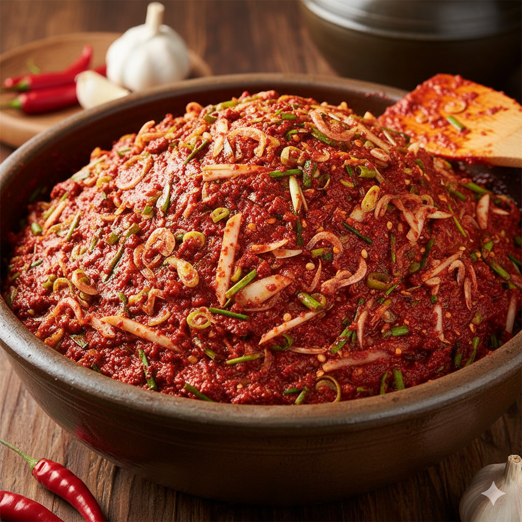 - 숙성: 양념이 서로 어우러지도록 1시간 이상 숙성시켜 고춧가루의 색을 곱게 만듭니다.