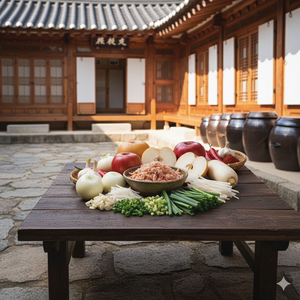 - 육수 만들기: 황태 머리, 무, 대파, 양파, 다시마 등을 넣고 약 30분~1시간 동안 푹 끓여 김장 육수를 진하게 만듭니다. (식혀서 사용)